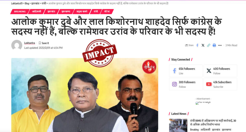 इस पूरे मामले का खुलासा पहले Loktantra19.com की रिपोर्ट के माध्यम से हुआ था। pf रिपोर्ट के अनुसार आलोक कुमार दुबे और लाल किशोरनाथ शाहदेव – जिन्हें कांग्रेस के नेता/पदाधिकारी के रूप में जाना जाता है – को लेकर यह दावा सामने आया था कि वे सिर्फ कांग्रेस के सदस्य ही नहीं, बल्कि दस्तावेज़ों में उन्हें रामेश्वर उरांव का “पारिवारिक सदस्य” भी बताया गया।